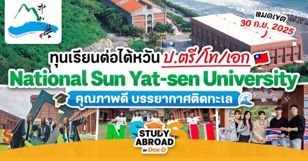 你好 ชาว Dek-D ทุกคนค่า ใครที่เล็งสมัครเรียนต่อ ‘ไต้หวัน’ ช่วงนี้หลายมหาวิทยาลัยกำลังเปิดรับสมัครรัวๆ ซึ่งวันนี้พี่ลูกหมูจะมาชี้เป้าเพิ่มอีกที่ นั่นก็คือ 國立中山大學 National Sun Yat-sen University (NSYSU) มหาวิทยาลัยคุณภาพดี วิวสวยติดทะเล ซึ่งที่นี่มีทุนทั้งระดับ ป.ตรี/โท/เอก และกำลังเปิดรับสมัครนักศึกษาใหม่สำหรับเทอม Spring 2026 ด้วย!