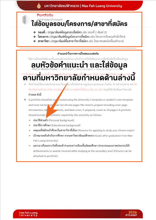มาแล้ว! แบบฟอร์มทำ Portfolio ม.แม่ฟ้าหลวง ใครจะเข้า มฟล. โหลดไปใช้เลย