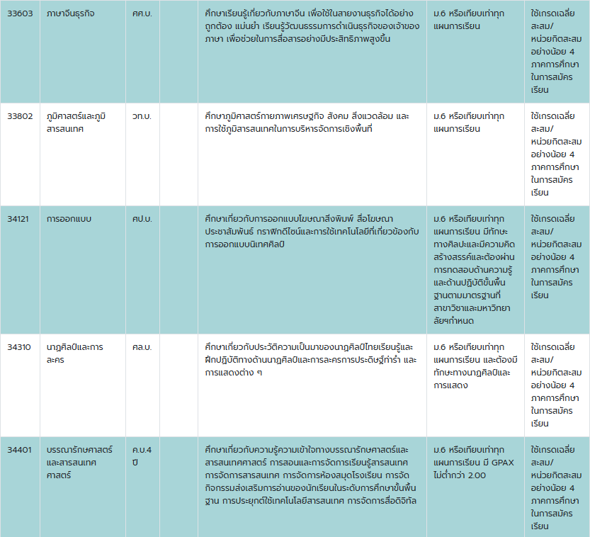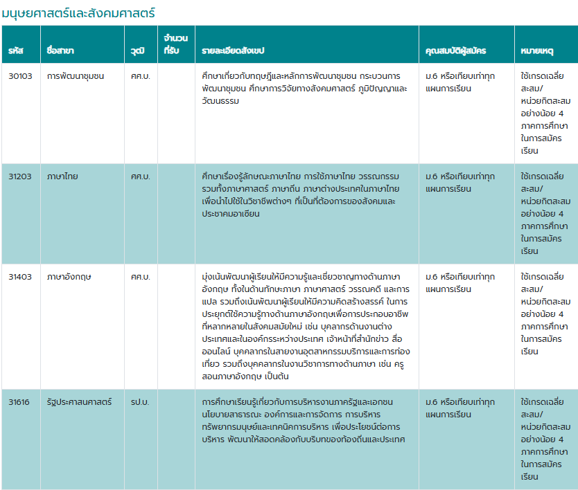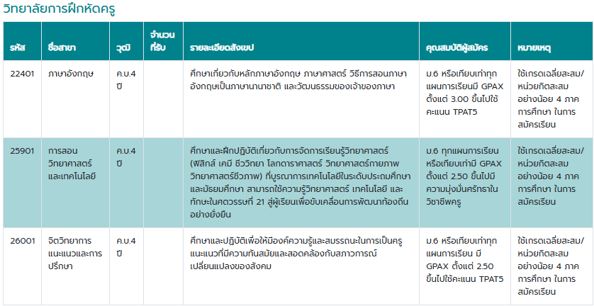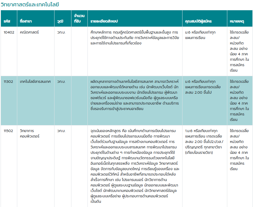 คณะที่เปิดรับสมัคร