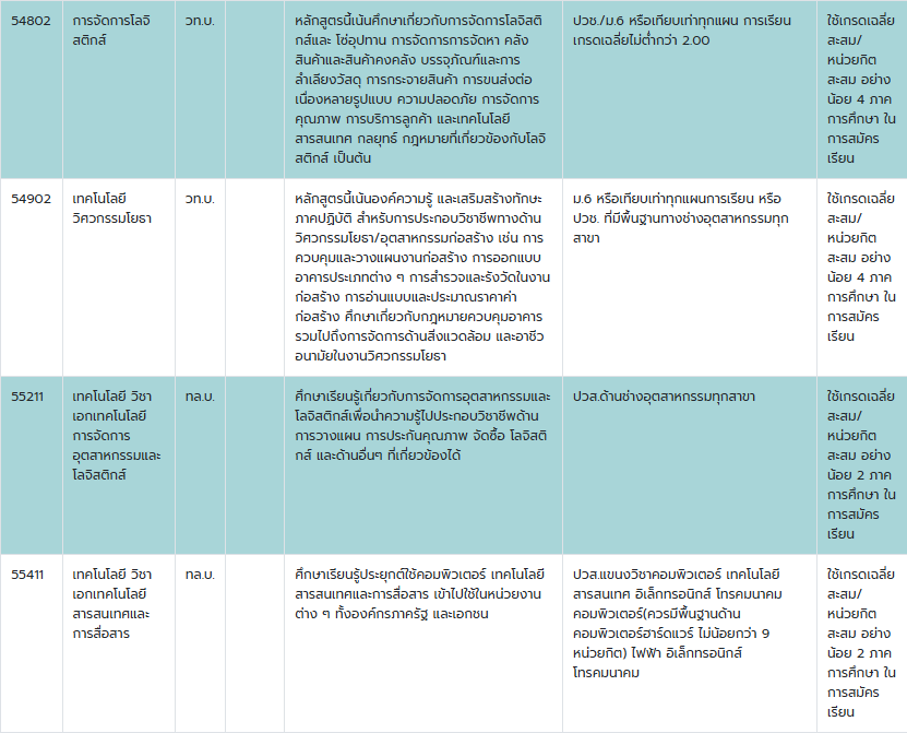 - เทคโนโลยี วิชาเอกเทคโนโลยีการจัดการอุตสาหกรรมและโลจิสติกส์