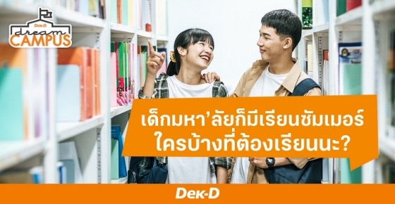 ยังไงก็ตาม การตัดสินใจเลือกเรียนซัมเมอร์ก็ขึ้นอยู่กับนักศึกษา เพราะฉะนั้นลองวางแผนดูล่ะว่าเราเรียนไหวหรือเปล่าในเทอมปกติ และอย่าลืมเช็กด้วยว่าวิชาที่เราต้องการเรียนเปิดสอนในเทอมที่สามมั้ย อีกอย่างเงื่อนไขของแต่ละมหาวิทยาลัยในการลงเรียนซัมเมอร์อาจแตกต่างกันอยู่เล็กน้อย น้อง ๆ อย่าลืมสอบถามและตรวจสอบรายละเอียดจากคณะนะ