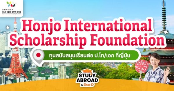 こんにちは! วันนี้เรามีข่าวดีมาฝากชาว Dek-D ที่กำลังมองหาทุนเรียนต่อ ป.โท หรือ ป.เอก กันอีกแล้วค่ะ เพราะล่าสุดโครงการทุนสุดปังส่งตรงจากประเทศญี่ปุ่นอย่าง ‘Honjo International Scholarship Foundation’ เตรียมเปิดรับสมัครผู้รับทุนในรอบ April 2026 ระหว่างวันที่ 1 ก.ย. - 31 ต.ค. นี้ ซึ่งข้อดีคือเค้าสนับสนุนค่าครองชีพรายเดือนตลอดหลักสูตร อีกทั้งรับไม่จำกัดสาขาด้วย ใครสมัครได้บ้าง? เลื่อนไปเช็กข้อมูลของปีนี้กันค่ะ~