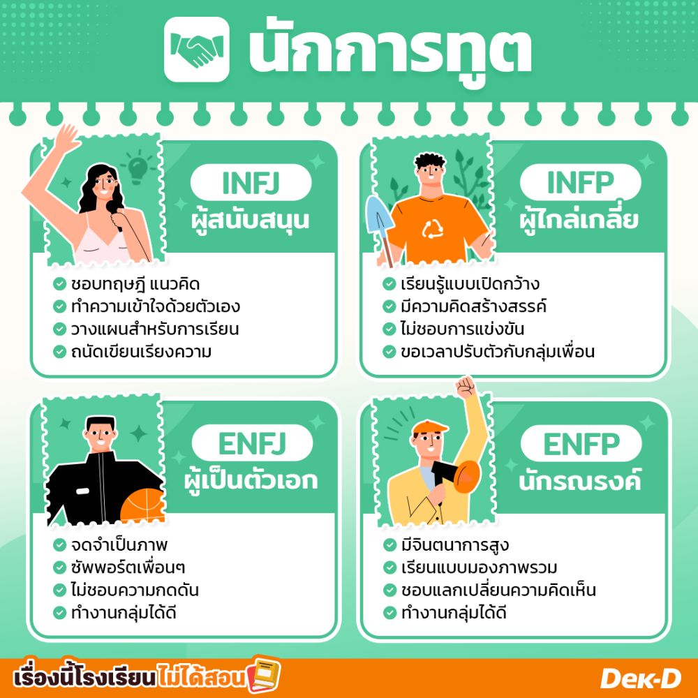 เชื่อว่าน้องๆ ชาว Dek-D ทุกคนน่าจะเคยทำแบบทดสอบบุคลิกภาพเพื่อหาคำตอบว่า MBTI ของเราคืออะไร? ถ้าใครยังไม่รู้สามารถไปทำ แบบวัดบุคลิกภาพ MBTI ได้ที่นี่ คลิก!