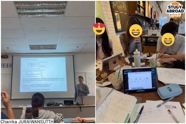 - แทบทุกวิชาจะมี Group Project ให้ทำ บางวิชาเข้มข้นมากๆ เช่น Microeconomics ที่ต้องทำรีเสิร์ชแล้วเชื่อมโยงกลับเข้าทฤษฎี // แนะนำว่าใครไม่ถนัด Excel ให้เริ่มฝึกไว้เลย เพราะได้ใช้บ่อยมาก! ค่อนข้างบ่อย