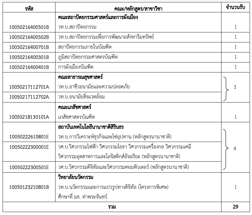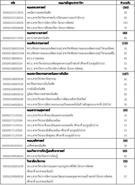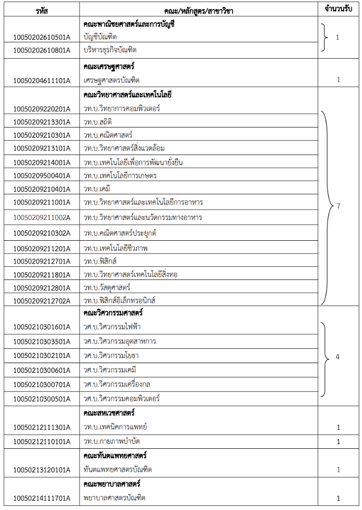 - บางสาขาต้องใช้คะแนนสอบ TGAT, TPAT3 ด้วย