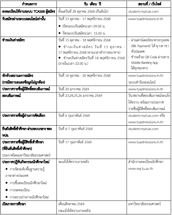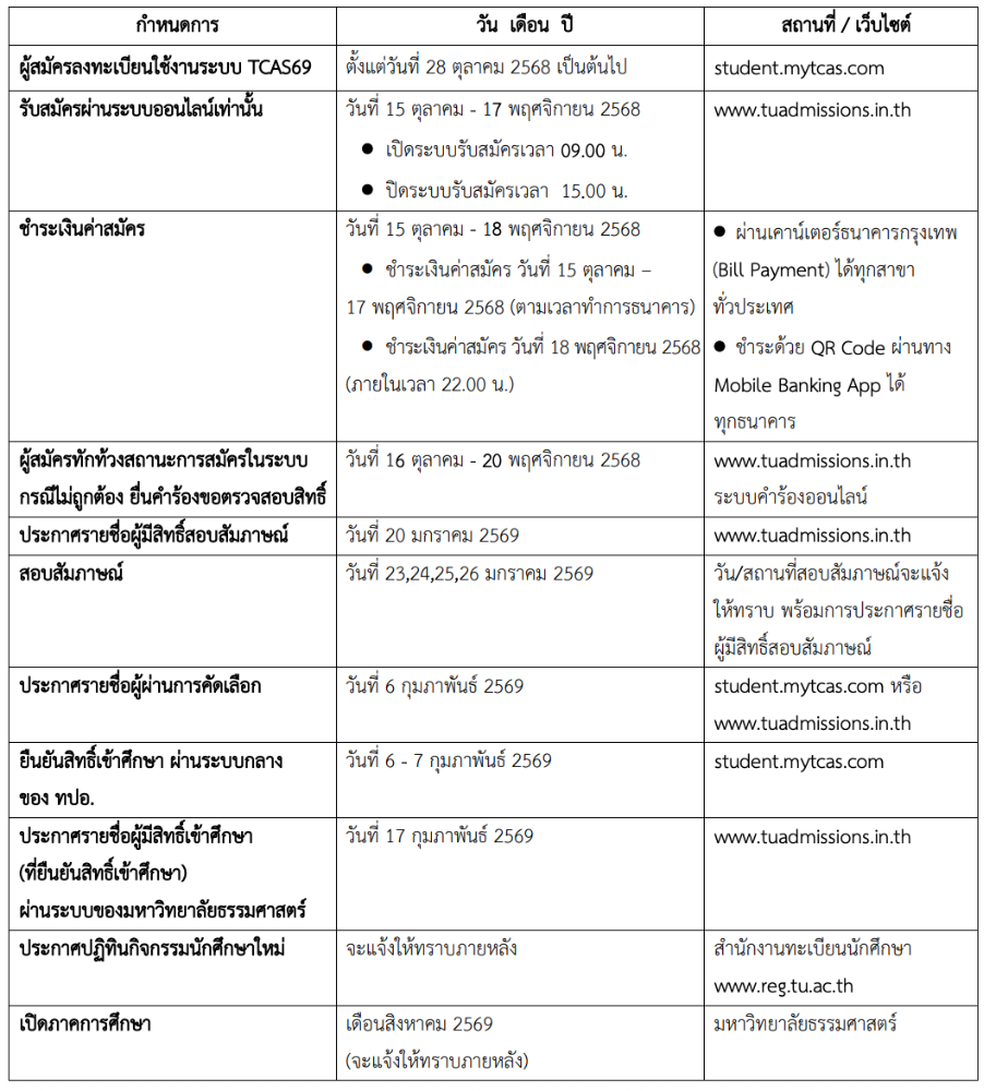 ม.ธรรมศาสตร์ จะเปิดรับ TCAS69 รอบ Portfolio 15 ตุลาคม - 17 พฤศจิกายนนี้ เบื้องต้นออกมาแล้ว 2 โครงการ คือ โครงการรับตรง ที่เปิดรับกว่า 2,445 ที่นั่ง และโครงการผู้มีความสามารถดีเด่นด้านวิชาการ (สอวน. และสสวท.) รับอีก 29 ที่นั่ง
