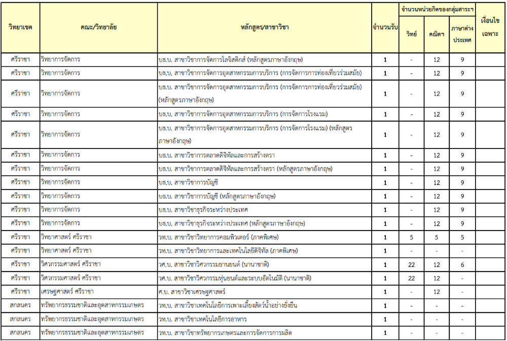 - ผู้สมัครลือกได้ไม่เกิน 5 สาขาวิชา