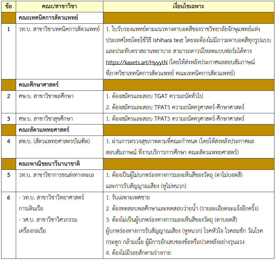 - มีคุณสมบัติเฉพาะตามที่สาขากำหนด ดังนี้