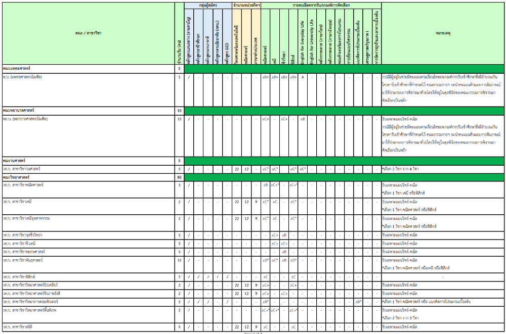 (สสวท.) ผ่านการอบรมค่ายโอลิมปิกวิชาการ ไม่ต่ำกว่าค่าย 3 - คุณสมบัติเฉพาะอื่น ๆ ตามที่สาขาวิชากำหนด