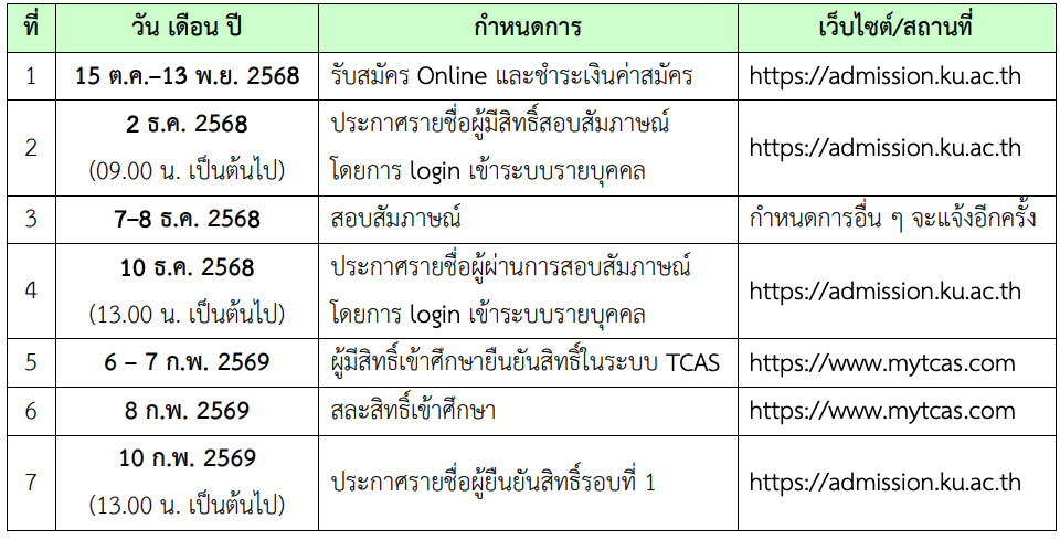 - รับสมัครและชำระเงิน 15 ตุลาคม - 13 พฤศจิกายน 2568