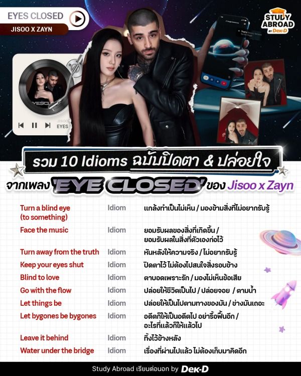เรียกว่าเป็นอีกหนึ่งเพลงเพราะๆ ความหมายดี และเสียงของทั้ง 2 คนเข้ากันสุดๆ ไปเลยค่ะ ยิ่งฟังยิ่งอิน! ก่อนจะจากกันไปก็ขอทิ้งท้ายว่า บางครั้งการหลับตาไม่ได้แปลว่าไม่เห็น แต่แปลว่าเราพร้อมจะปล่อยวางแล้วค่ะ :D…ป่ะ ฟังเพลงกันต่อ! อย่าลืมเรียนรู้ Idioms ใหม่ๆ ที่พี่เอามาฝากด้วยน้า~