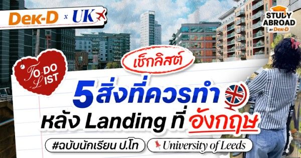 สวัสดีน้องๆ ชาว Dek-D ค่ะ ใครที่กำลังเตรียมตัวบินไปเรียนต่อที่ประเทศอังกฤษ เชื่อว่าหลายคนอาจมีความกังวลไม่น้อยกับ step ถัดไปหลังจาก Landing ว่าจะต้องทำอะไรบ้าง อันนั้นก็ต้องทำ อันนี้ก็ห้ามลืม! (บอกเลยว่าวีคแรกเป็นช่วงที่ปรับตัวหนักสุดๆ เลยค่า)
