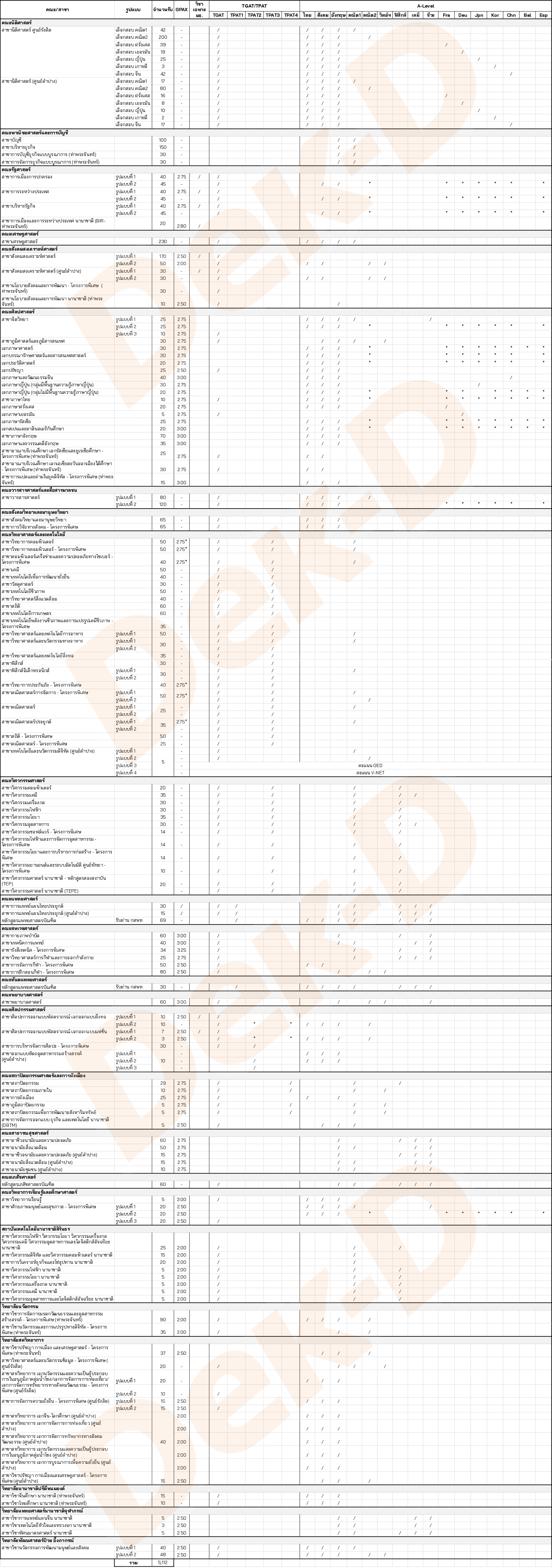 - บางสาขาวิชากำหนดคะแนนขั้นต่ำ แบบ T-Score เช่น