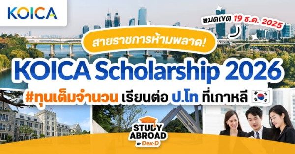 โอกาสสำหรับใครที่ทำงานข้าราชการหรือพนักงานของรัฐที่สนใจไปเรียนต่อ ป.โท ในสาขาสายพัฒนาประเทศ ข่าวดีคือตอนนี้มีทุนจากเกาหลี ‘KOICA Scholarship Program 2026’ กำลังเปิดรับสมัครคนไทยเข้ารับทุนอยู่นะครับ ซึ่งความปังคือเป็นทุนเต็มจำนวน แถมมีโควตาสำหรับเรียนต่อมหาวิทยาลัยในเครือ SKY* ด้วยนะ!