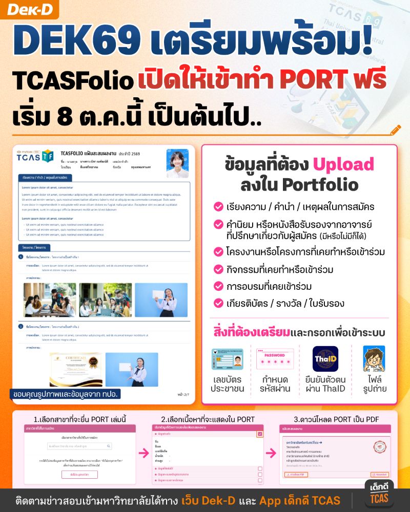 สำหรับ TCAS69 พี่ๆ ทีมงาน Dek-D ได้รวบรวมมาให้แล้ว ว่ามหาวิทยาลัยที่รับ TCASFolio มีที่ไหนบ้าง เช็กเลย https://www.dek-d.com/tcas/67619/