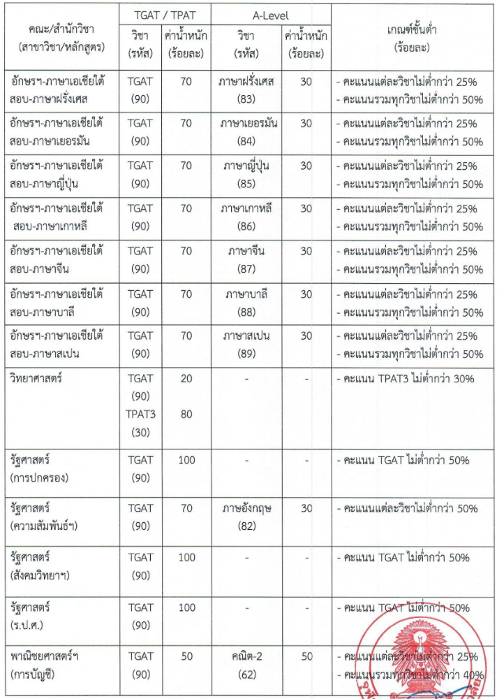 - เกณฑ์ทางวิชาการ : TGAT 50% + TPAT5 50%