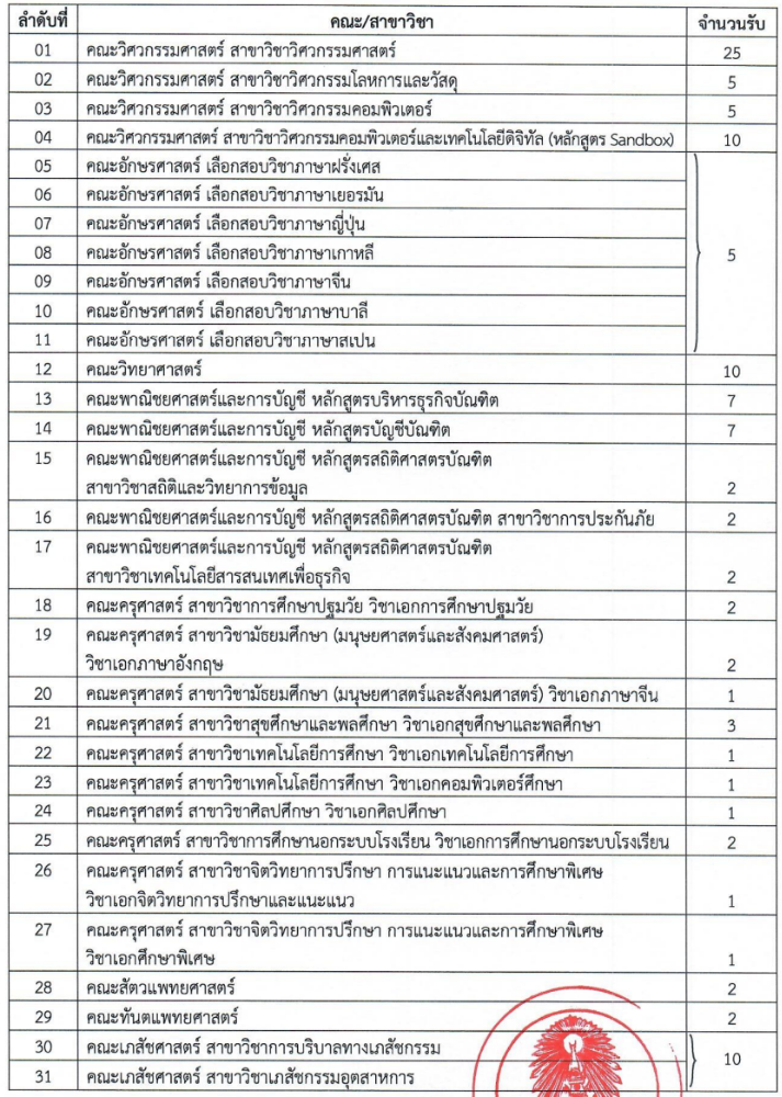 - คณะอักษรศาสตร์ สาขาวิชาภาษาไทย 5 ที่นั่ง
