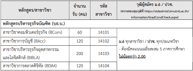- โควตาพื้นที่ คณะบริหารธุรกิจและอุตสาหกรรมบริการ มจพ.ปราจีนบุรี คลิก