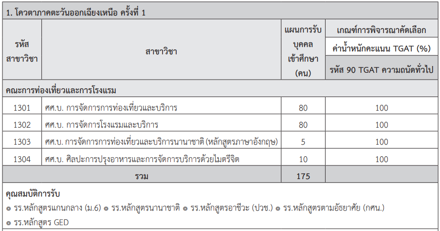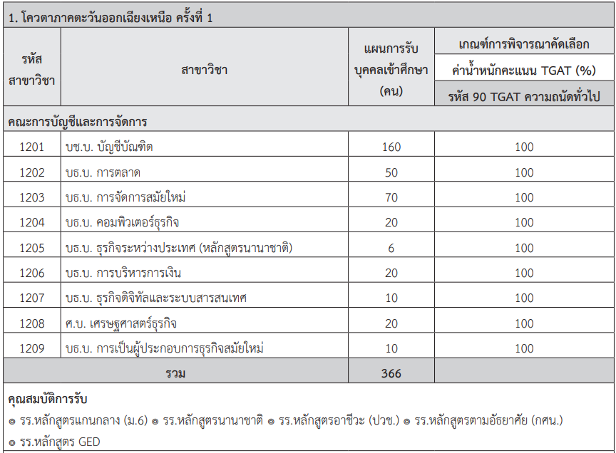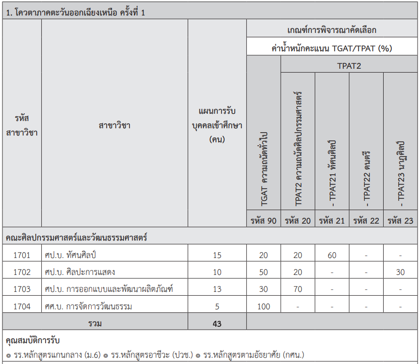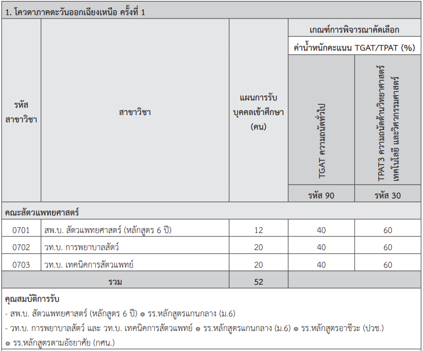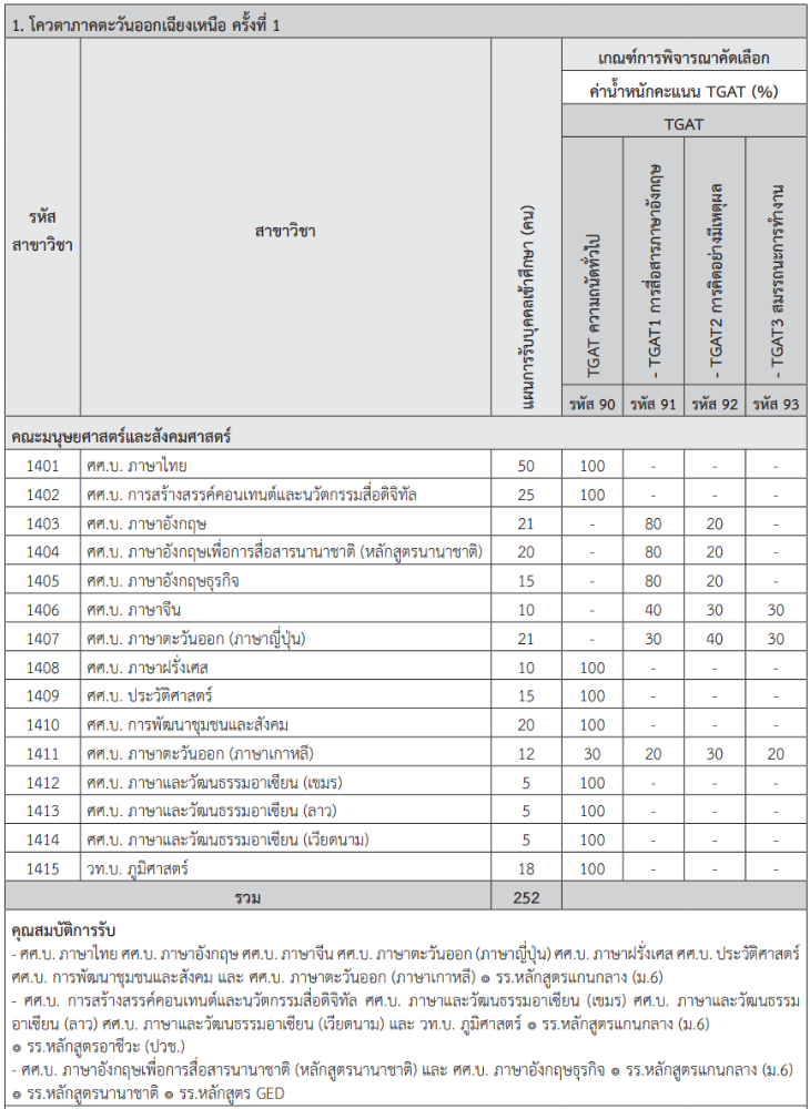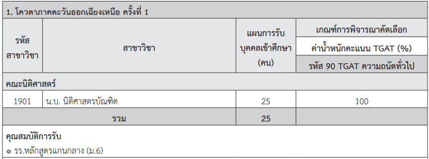กำหนดการรับสมัคร โควตาภาคตะวันออกเฉียงเหนือ ครั้งที่ 1
