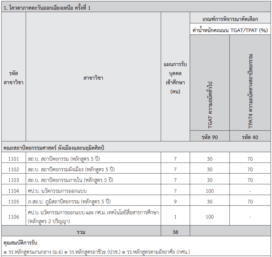 - มีคะแนน TGAT/TPAT ตามที่กำหนด