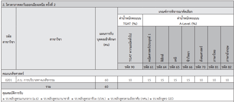 - มีคะแนน TGAT/TPAT และ A-Level ตามที่กำหนด