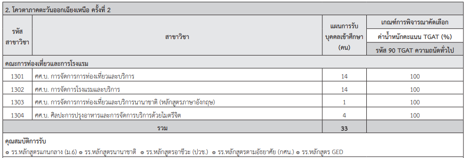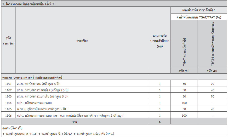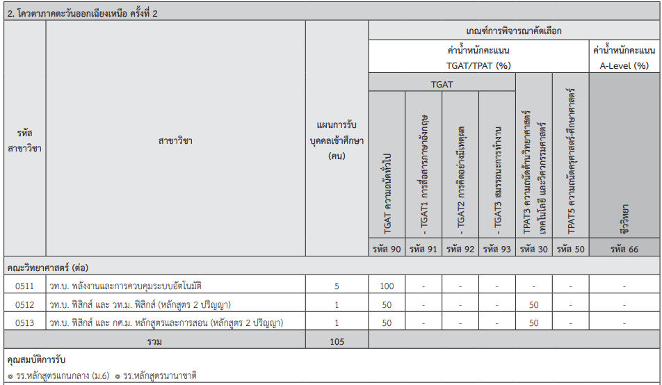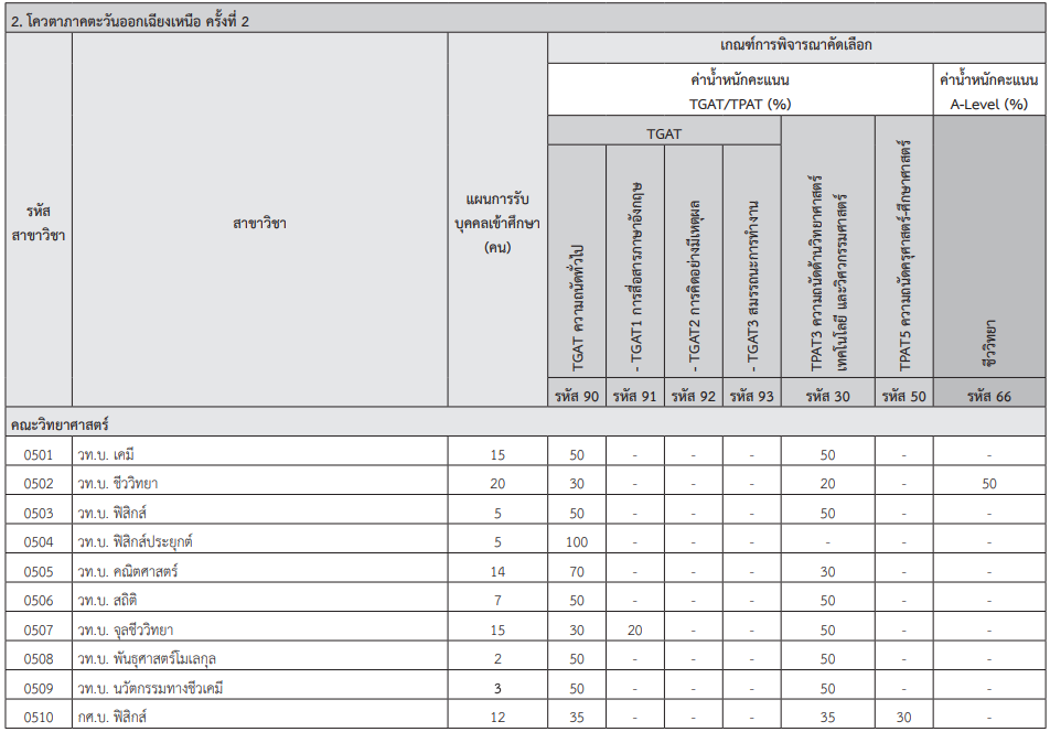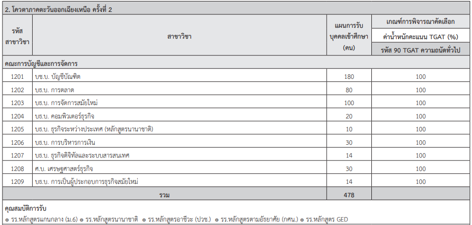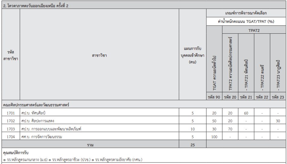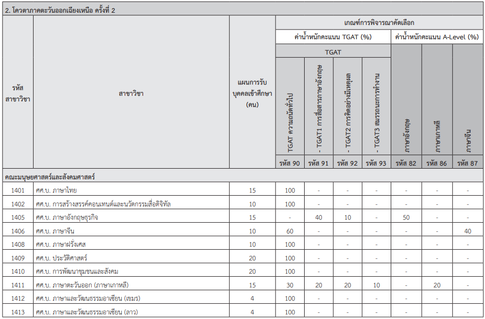 กำหนดการรับสมัคร โควตาภาคตะวันออกเฉียงเหนือ ครั้งที่ 2