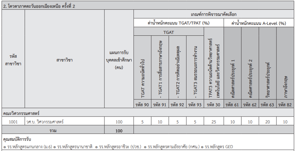 - คะแนน TGAT/TPAT และ A-Level รวมกัน 100%
