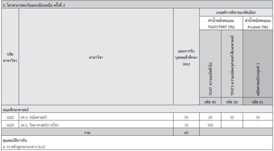 - อยู่ ม.6 เด็กซิ่ว หรือเทียบเท่า จากสถานศึกษาในภาคตะวันออกเฉียงเหนือ