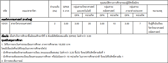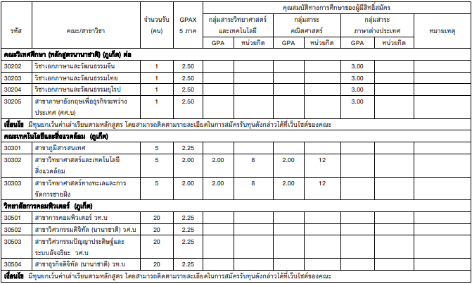 มีเงื่อนไข GPAX, GPA และการให้ทุนแตกต่างกันแล้วแต่คณะ รายละเอียด ดังนี้