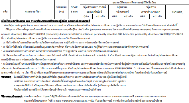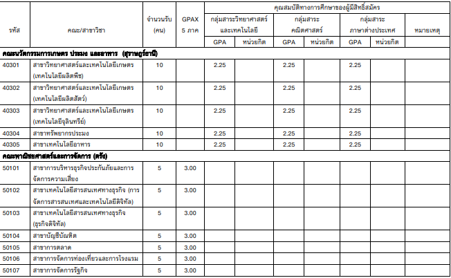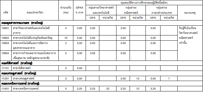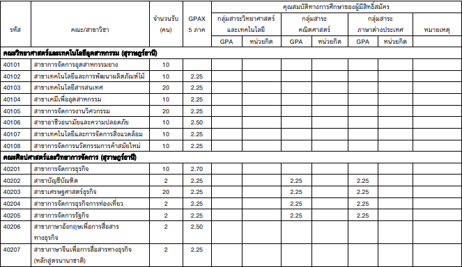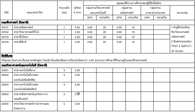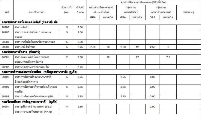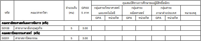 - มี GPAX 5 เทอม ไม่ต่ำกว่า 3.00