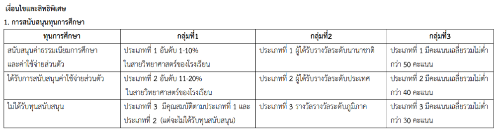 - ต้องรักษาระดับผลการเรียนเฉลี่ย 3.25 จึงจะได้ทุนในเทอมต่อไป
