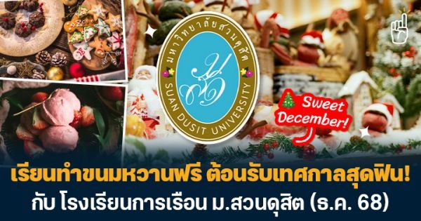 นับถอยหลังสู่เดือนแห่งเทศกาลแสนอบอุ่นใจทั้งคริสต์มาสและปีใหม่ บรรยากาศแบบนี้จะมีอะไรดีไปกว่ากลิ่นขนมอบหอมๆ อุ่นๆ ลอยมาจากในครัว~ ไม่รอช้า One More Course ขอชวนทุกคนไปเข้าครัวเรียนทำขนมอร่อยๆ กับเชฟตัวจริงจาก โรงเรียนการเรือน มหาวิทยาลัยสวนดุสิต ที่พร้อมเสิร์ฟ 3 คอร์สฟรีสอนทำเมนูขนมหวาน เพื่อต้อนรับช่วงเทศกาลแห่งความสุข