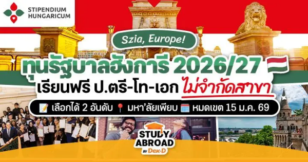 ทุนรัฐบาลฮังการี ประจำปี 2026 เรียนฟรี ป.ตรี/โท/เอก