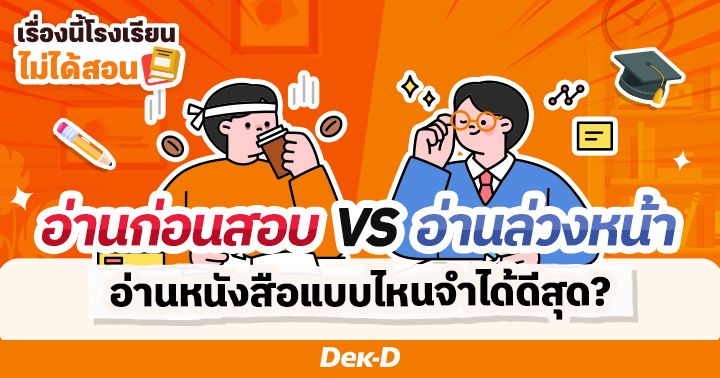 ก่อนอื่นขอถามน้อง ๆ ชาว Dek-D ทุกคนก่อนว่า ชอบอ่านหนังสือสอบตอนไหนมากที่สุด? บางคนชอบค่อย ๆ อ่านไปเรื่อย ๆ แต่หลายคนก็ชอบแบบ one night miracle อ่าน 1 คืนก่อนสอบ แล้ววิธีการอ่านหนังสือแบบไหน ส่งผลต่อความจำยังไงบ้าง ไปดูกัน!