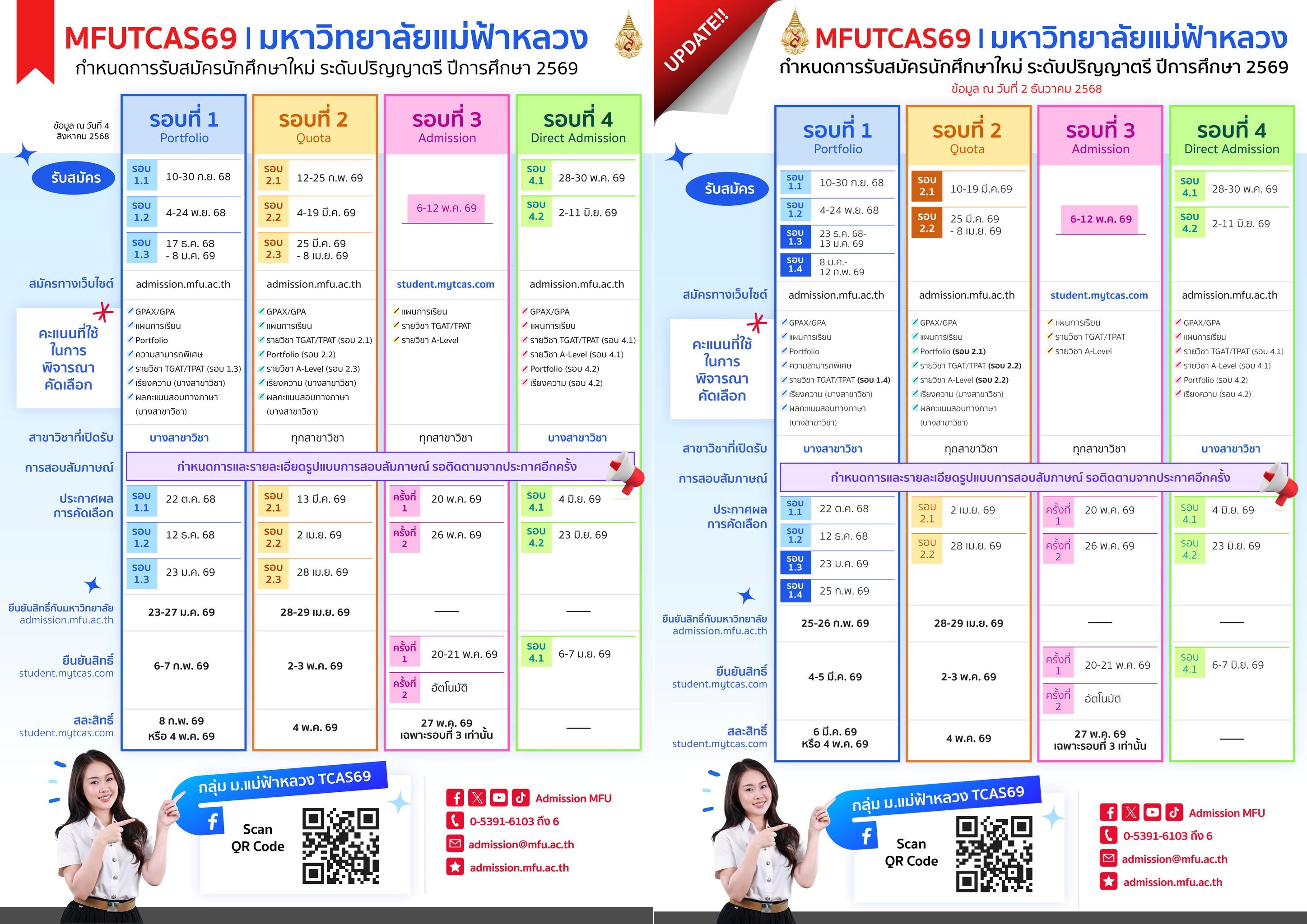ม.แม่ฟ้าหลวง ปรับปฏิทิน TCAS69 รอบ Portfolio และ Quota พร้อมเพิ่มรอบ Portfolio 1.4