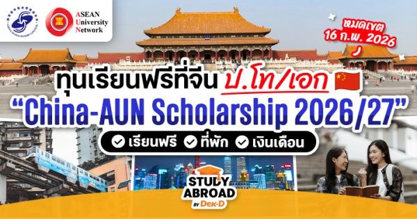 你好! สวัสดีชาว Dek-D ทุกคนค่ะ สำหรับใครที่เล็งไปเรียนต่อประเทศจีน พี่ลูกหมูก็มีข่าวดีมาเสิร์ฟรับต้นปีกันเลย เพราะตอนนี้มีโครงการทุนรัฐบาลจีน ‘China–AUN Scholarship’ ประจำปี 2026/2027 ซึ่งทุนนี้เป็นทุนเต็มจำนวนที่มอบให้กับชาวอาเซียนโดยเฉพาะ ครอบคลุมทั้งค่าเล่าเรียน ค่าที่พัก ค่าครองชีพ และประกันสุขภาพ เรียกได้ว่าครบมาก!
