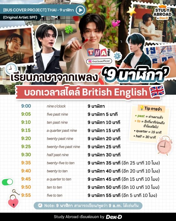 พอเห็นเวลา 9 นาฬิกาแบบนี้ น้องๆ สงสัยกันมั้ยว่าในภาษาอังกฤษแบบ British English นั้นเค้าเขียนกันยังไง แล้วฉันจะพูดอย่างไรเพื่อให้เธอเข้าใจ ไม่รอช้าตาม #แจกศัพท์ฉบับเด็กนอก มาจดกันเลยครับ