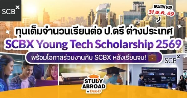 สวัสดีครับน้องๆ ชาว Dek-D วันนี้ พี่วุฒิ มีโอกาสดีๆ สำหรับใครที่มีความฝันอยากเรียนต่อต่างประเทศ และอยากทำงานในองค์กรยักษ์ใหญ่ระดับประเทศอย่างกลุ่ม SCBX ตอนนี้โครงการ Young Tech Scholarship 2569 เปิดรับสมัครแล้วนะครับ