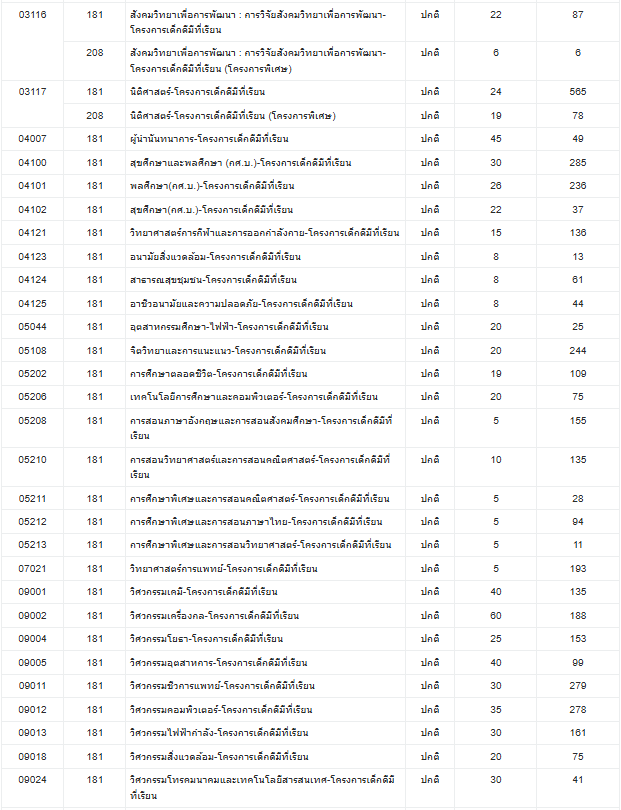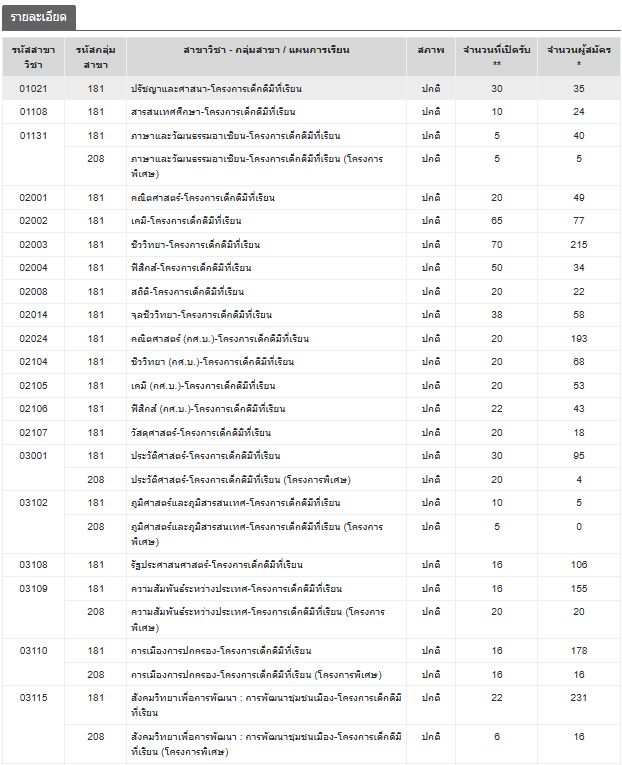 | 13 | ชีววิทยา | 70 | 215 | 1 : 3 |