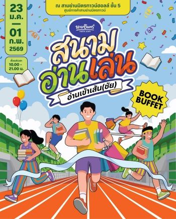 On Your Mark, get set, go! กลับมาอีกครั้งกับงานหนังสือสุดสนุกที่นักอ่านรอคอย กับ “นายอินทร์สนามอ่านเล่น” ตอน อ่านเข้าเส้น(ชัย) งานเดียวยกทัพสำนักพิมพ์กว่า 200 แห่ง รวมครบรส มีทุกแนวที่ตามหา และไฮไลต์ที่ห้ามพลาดคือ Book Buffet ที่หยิบหนังสือได้ไม่อั้น จัดเต็มโปรโมชันและส่วนลดพิเศษ พร้อมกิจกรรมแน่นๆ ตลอดงาน