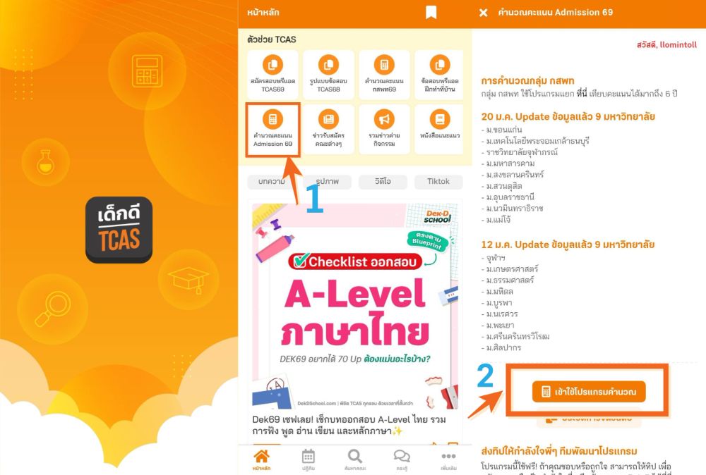 ขั้นตอนที่ 1 เปิดใช้งาน "โปรแกรมคำนวณคะแนน TCAS69 รอบ Admission" ที่แอปฯ "เด็กดี TCAS"
