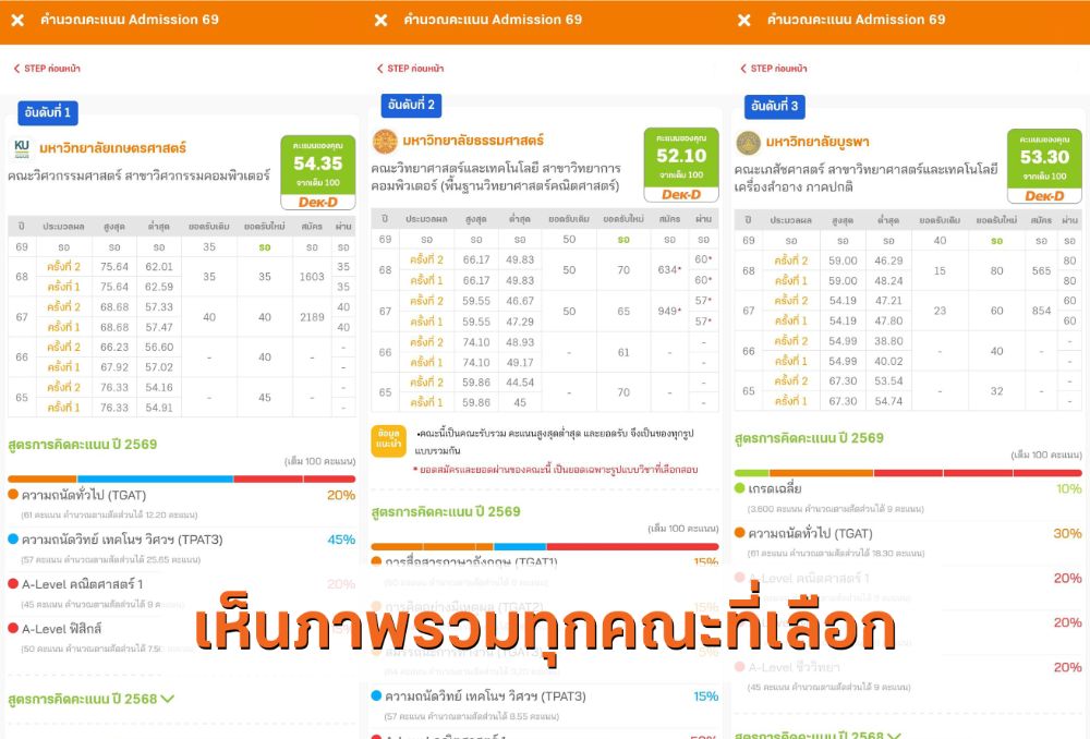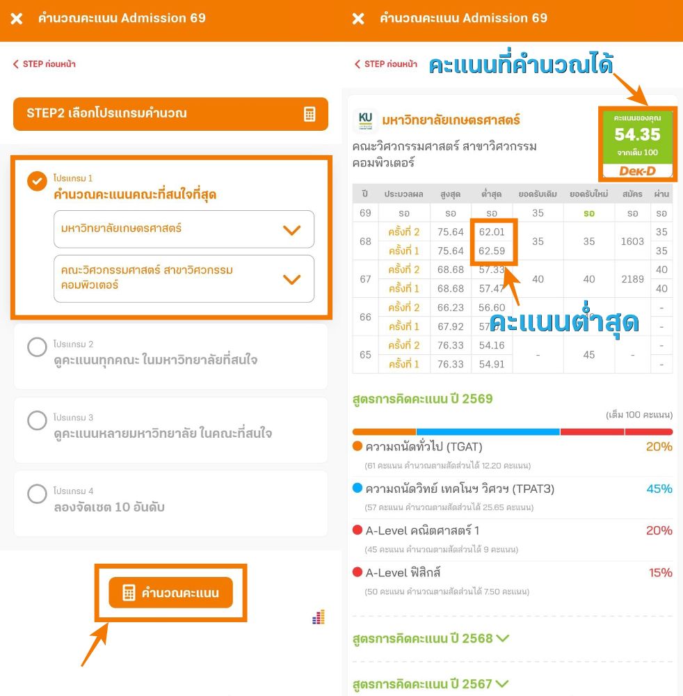 - กดคำนวณคะแนน และเทียบคะแนนของตัวเองกับคะแนนต่ำสุดของปี 68 โดยเทียบกับคะแนนต่ำสุด "ครั้งที่ 2" เป็นหลัก