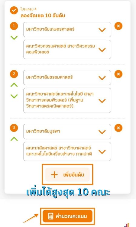 สำหรับฟังก์ชัน 10 อันดับ ช่วยประหยัดเวลา และเห็นภาพรวมพร้อมเปรียบเทียบได้ง่ายกว่าค่ะ เหมาะกับคนที่มีคณะในใจหลายคณะ