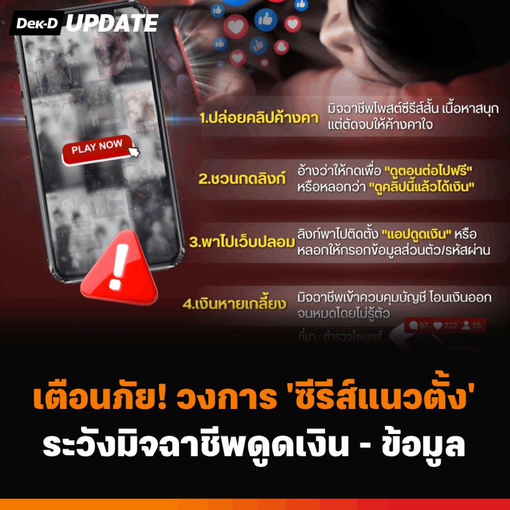 เตือนภัย! วงการ 'ซีรีส์แนวตั้ง' ระวังมิจฉาชีพดูดเงิน - ข้อมูล
