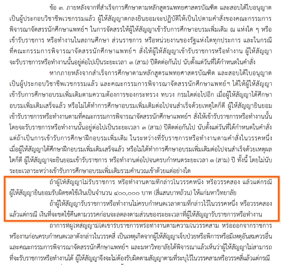 คณะแพทยศาสตร์ ในสัญญา ระบุเฉพาะค่าปรับ กรณีไม่ใช้ทุนหลังเรียนจบ