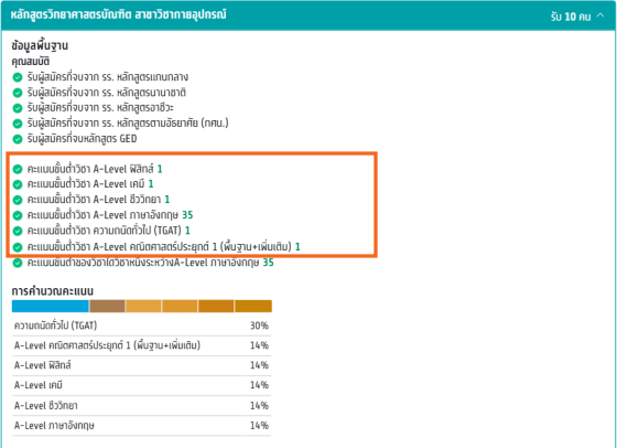 แต่ปัจจุบันไม่เป็นแบบนั้น ระบบจะกรองเฉพาะคุณสมบัติด้านการศึกษาอย่าง GPAX หรือ หน่วยกิต แต่เรื่องคะแนนสอบไม่ได้กรอง ต่อให้มีคะแนนไม่ครบก็สมัครได้ โดยตีคะแนนเป็น 0 เทียบเท่ากับคนสอบแล้วได้ 0 คะแนน