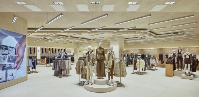 และไม้โอ๊คธรรมชาติ ถูกนำมาใช้เป็นองค์ประกอบหลักโดยรอบพื้นที่ ซึ่งช่วยเพิ่มสัมผัสที่ให้ความอบอุ่น ขณะที่แสงสว่างมีบทบาทสำคัญในการออกแบบครั้งนี้ ด้วยการเดินระบบไฟเส้นแบบต่อเนื่องที่ออกแบบพิเศษ สร้างบรรยากาศร่วมสมัยที่อบอุ่นและเป็นมิตร พร้อมนำสายตาไปตลอดเส้นทางการช้อปปิ้งภายในร้าน