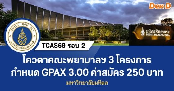 TCAS69 รอบ 2 : คณะพยาบาลศาสตร์ ม.มหิดล 3 โครงการ