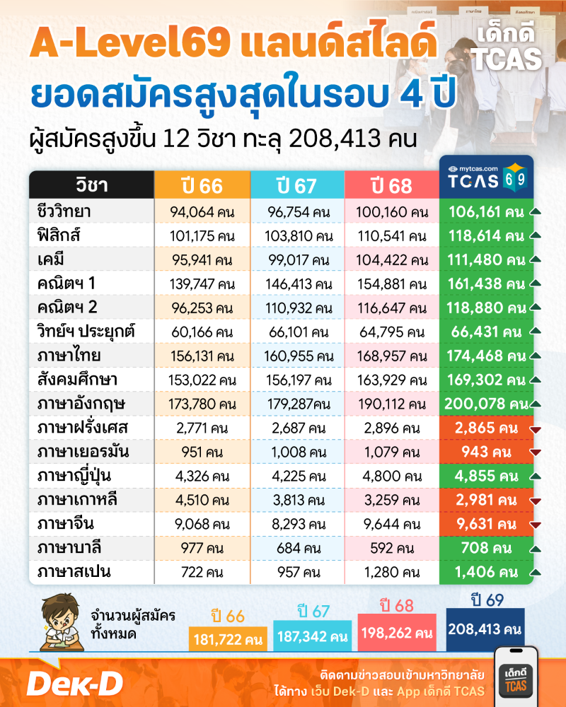 มาแล้ว! ยอดผู้สมัคร A-Level 69 เพิ่มขึ้นกว่า 10,000 คน สูงสุดในรอบ 4 ปี