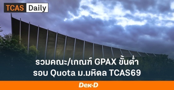 DEK69 คนไหนที่กำลังเล็งรอบ Quota ม.มหิดล ตอนนี้ประกาศเกณฑ์ GPAX ขั้นต่ำแต่ละคณะออกมาแล้ว ทั้งหมด 18 คณะ รับรวมเยอะถึง 1,627 คน สมัครได้ตั้งแต่วันที่ 20 มี.ค. 69 - 8 เม.ย. 68 โดยจำกัดสิทธิ์สมัครได้ 1 โครงการต่อคนเท่านั้น